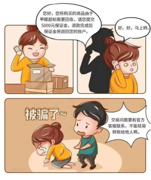 诈骗分子冒充电商平台或物流快递企业客服,谎称大学生网购的商品出现质量问题或售卖的商品因违规被下架,以“理赔退款”或“重新激活店铺”为由,说自己需要重新进行操作,诱导大学生提供银行卡和手机验证码等信息。